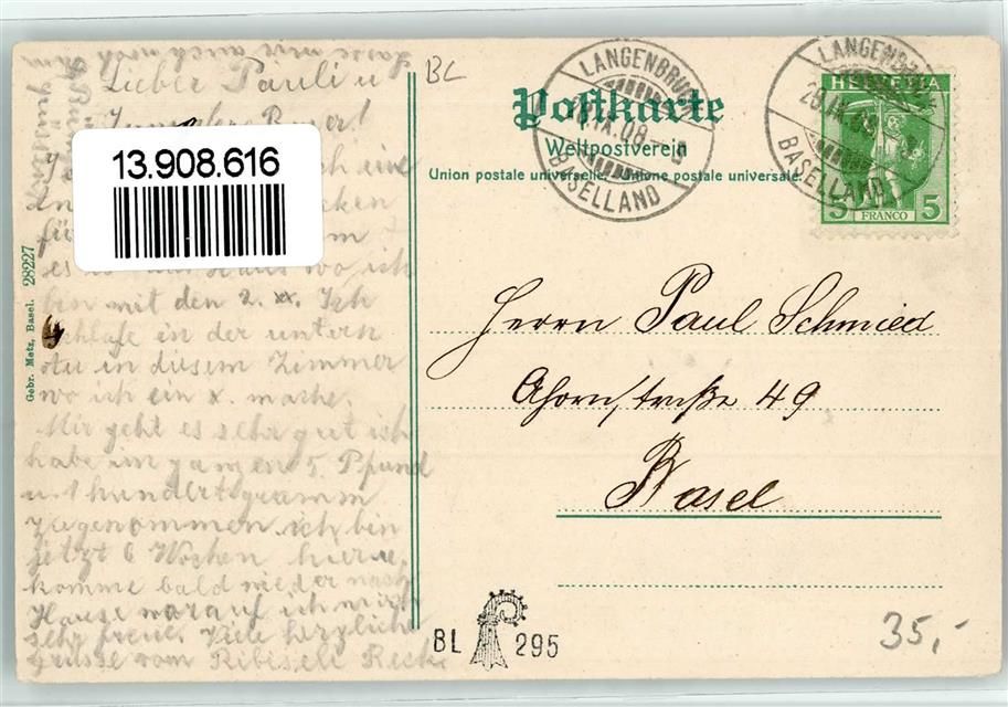 4438 Langenbruck 1908 - Obere Au u. Sanatorium