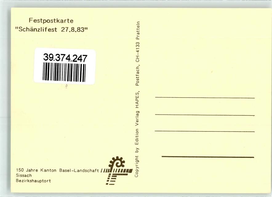 4450 Sissach 1983 - Dorfbrunnen Festpostkarte Schänzlifest