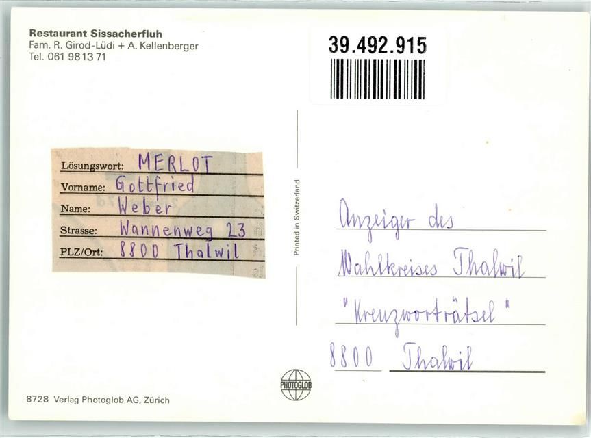 4450 Sissach - Gasthaus Sissacherfluh
