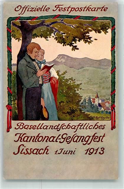 4450 Sissach Künstlerkarte Basellandschaftliches Kantonal-Gesangfest Juni 1913 sign Eggler