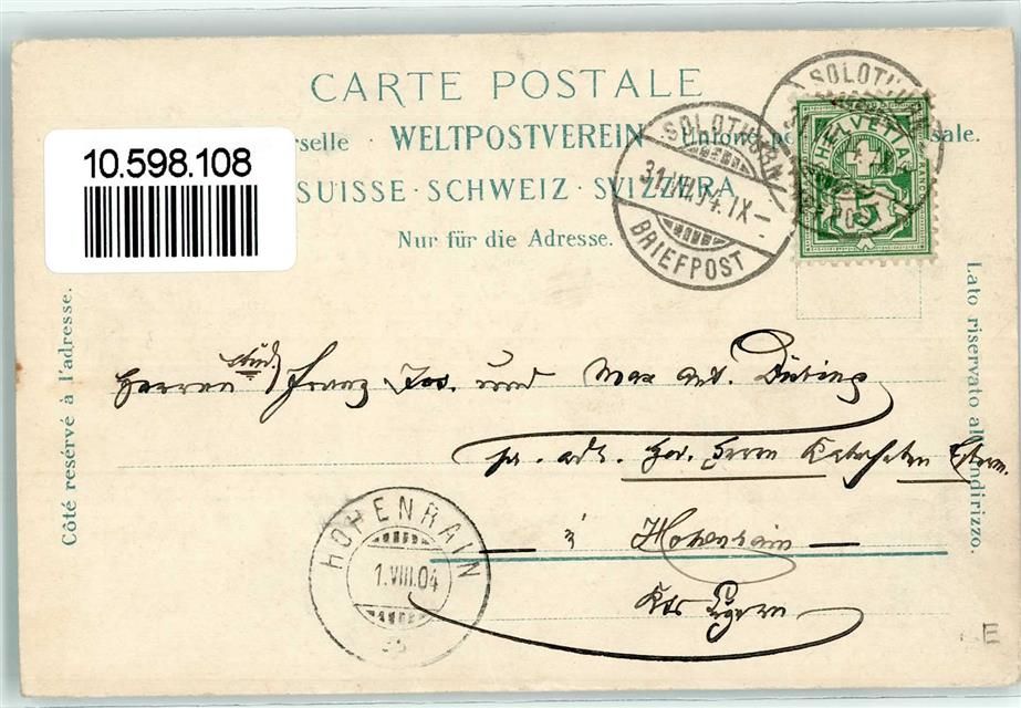4500 Solothurn Soleure 1904 Gebrauchsspuren St Ursuskirche