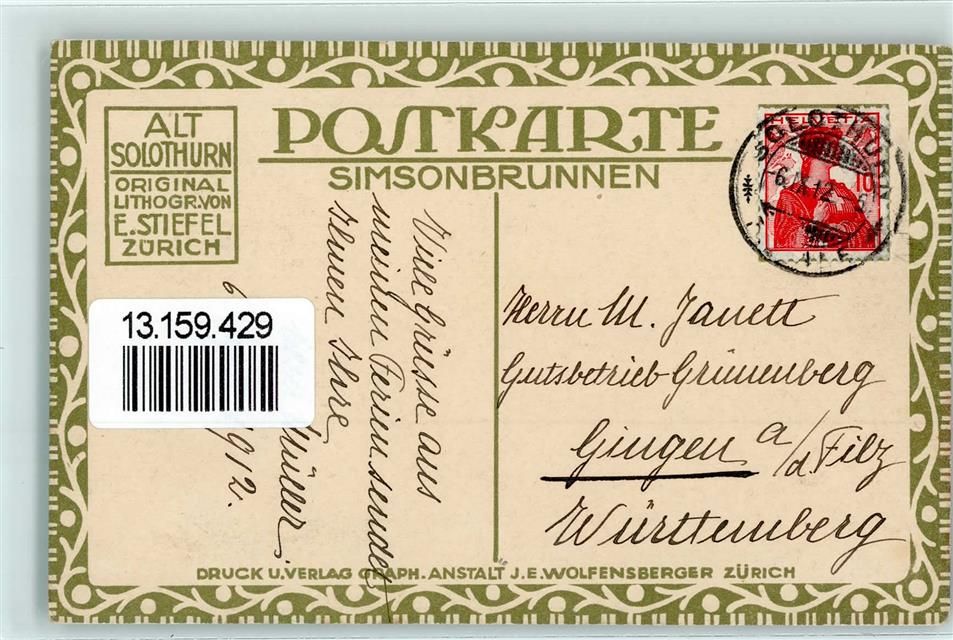 4500 Solothurn Soleure 1912 Künstlersteindruck Alt-Solothurn