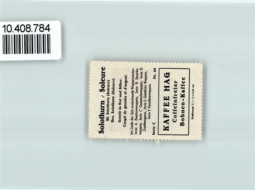 Solothurn, Vignette Wappen Kaffee Hag ca 1920-1940