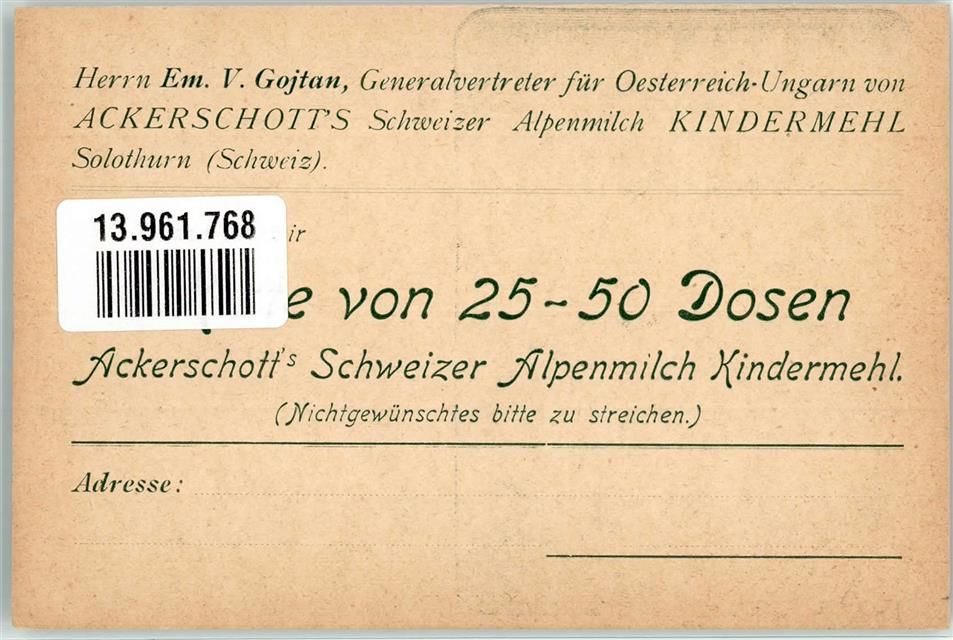 4500 Solothurn Soleure Werbe AK Achkerschott`s Alpenmilch Kindermehl