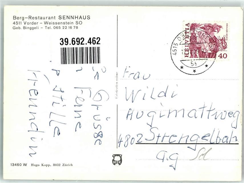 4515 Weissenstein b. Solothurn - Gasthaus Sennhaus