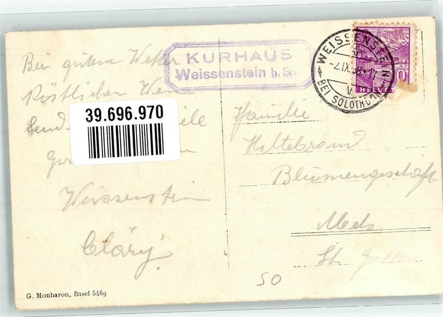4515 Weissenstein b. Solothurn - Kurhaus Hüttenstempel