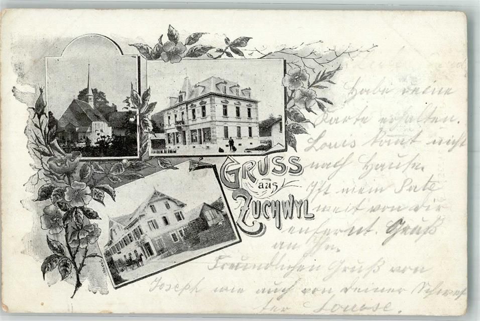 4528 Zuchwil 1902 Foto AK Rathaus Kirche Gasthaus