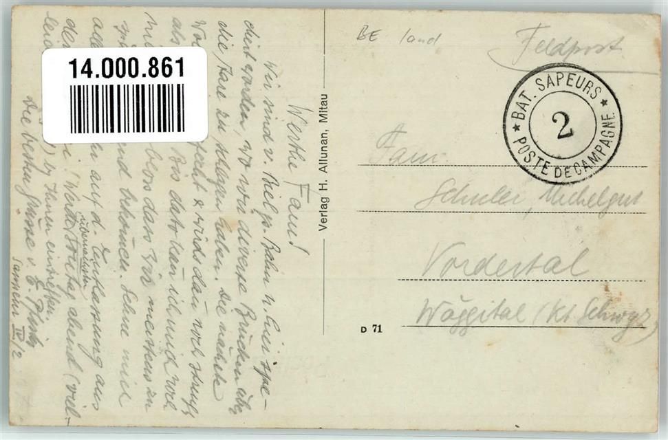 Wiedlisbach, Feldpost Bat.Sapeurs Nr. 2