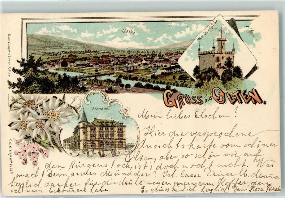 4600 Olten 1898 Lithographie Wartburg Säli Postamt Edelweiss