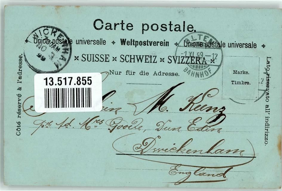 4600 Olten 1899 Lithographie / Mondschein Kirche Neues Postgebäude Altstadt Säli