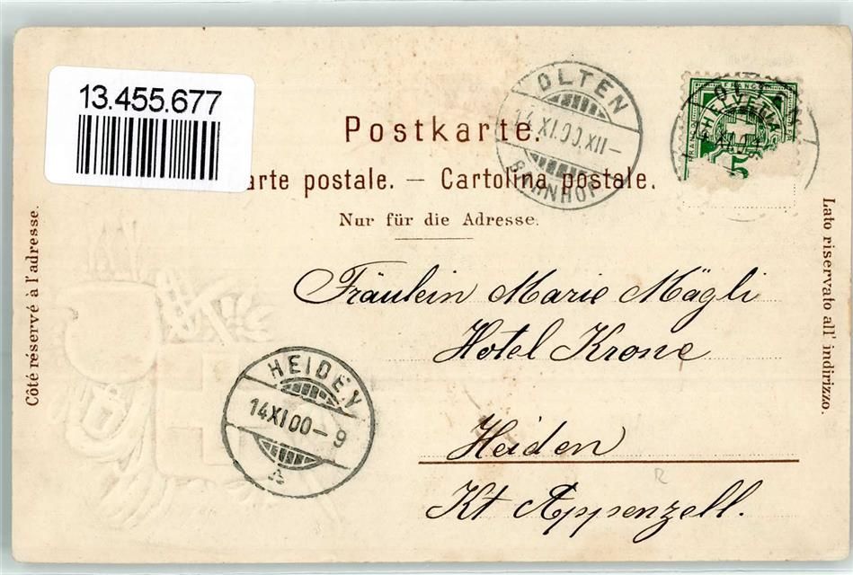 4600 Olten 1900 Prägedruck Gams Wappen Lithographie