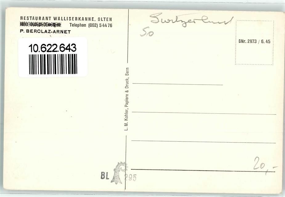 4600 Olten - Restaurant Walliserkanne Gaststube