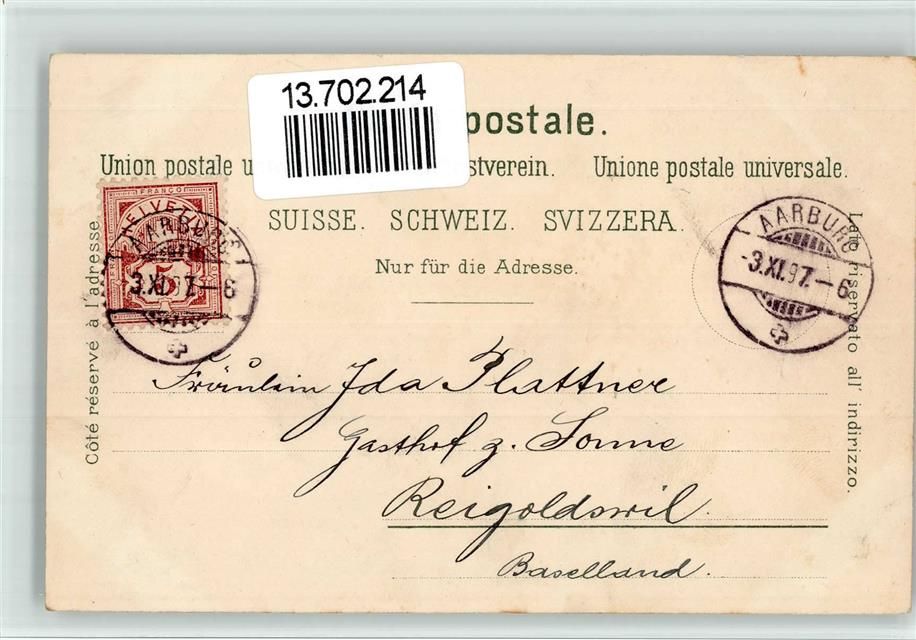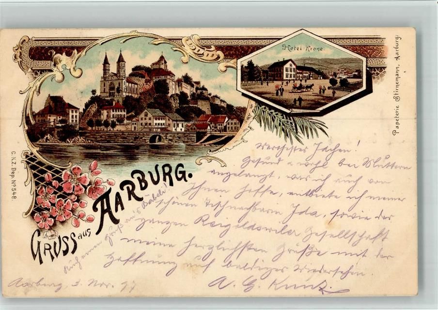 4663 Aarburg 1897 BOAKC Lithographie Hotel Krone