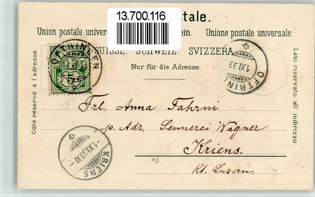 4665 Oftringen 1899 BOAKC Kreuzstrasse Wartburg-Säli Lithographie