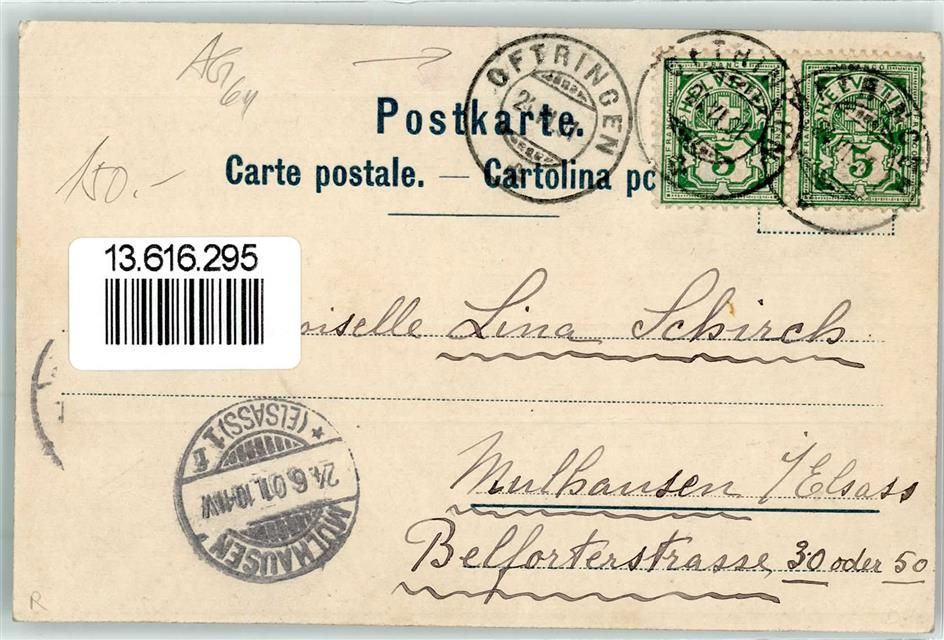 4665 Oftringen 1901 Lithographie Gasthaus Bad Lauterbach Ort lt. Recherche