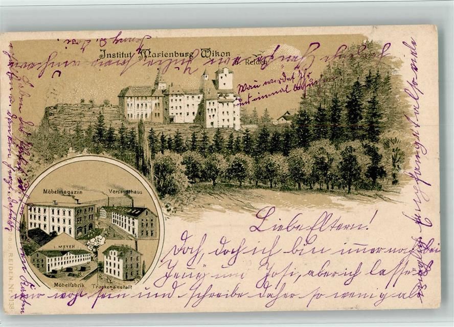 Wikon, Lithographie Institut Marienburg Reiden Möbelmagazin Versandthaus Möbelfabrik Trochenanstalt L. Meyer