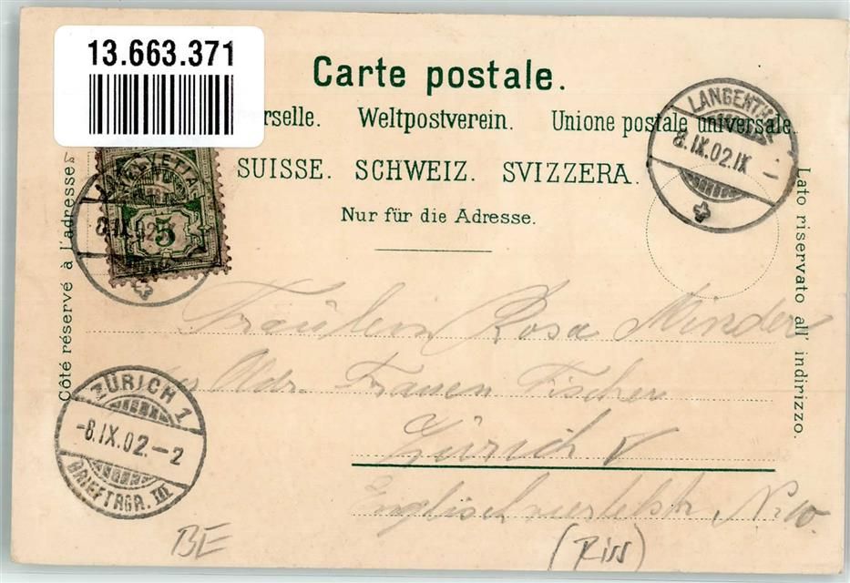 Langenthal, Hotel Bären Krankenhaus Schule Hirschpark Lithographie