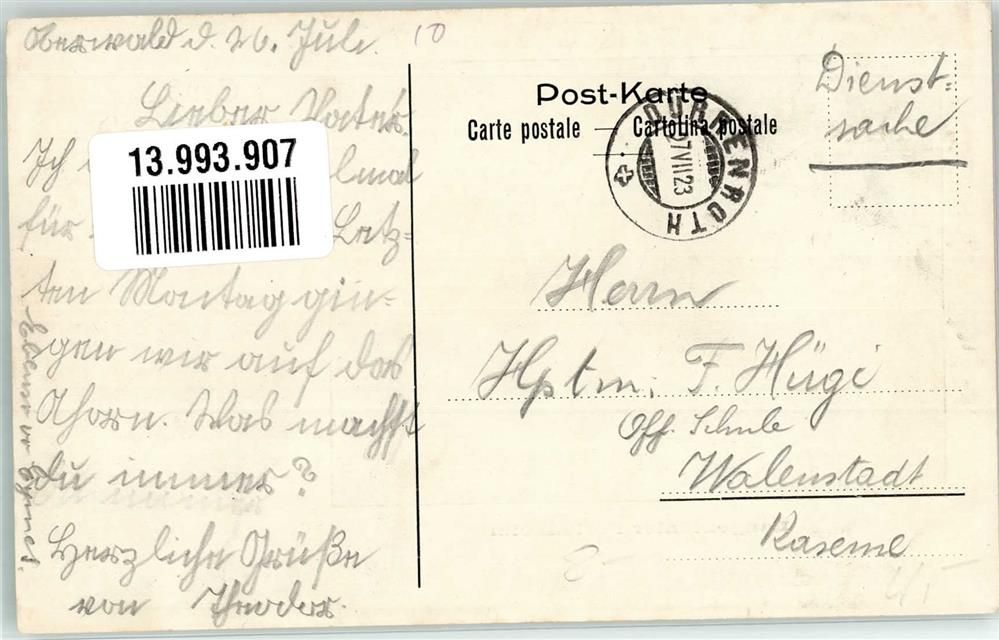 Langenthal, Pension Feldpost Dienstsache