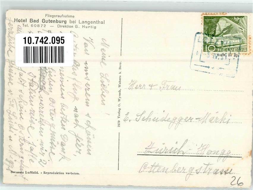 4900 Langenthal Foto AK Fliegeraufnahme Hotel Bad Gutenburg