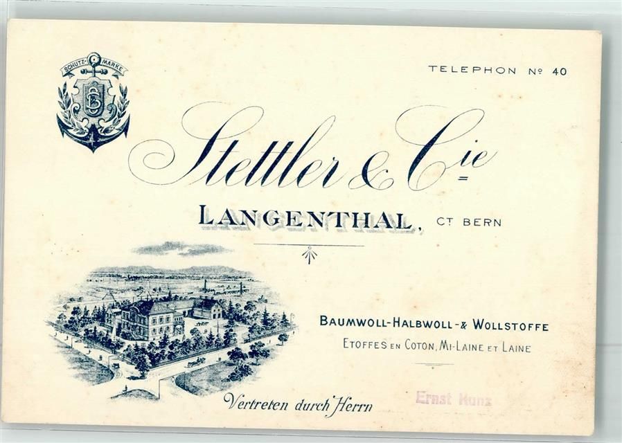 Langenthal, Besuchsanzeige Stetter & Cie Geschäftskorrespondenz