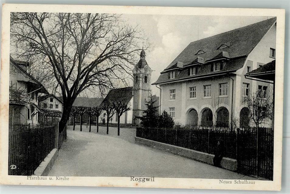 4914 Roggwil BE 1943 Foto AK Kirche Pfarrhaus Schulhaus