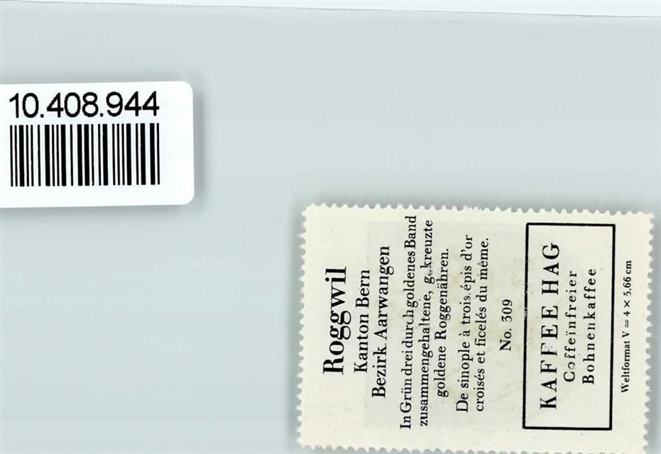 Roggwil BE, Vignette Wappen Kaffee Hag ca 1920-1940 Ähren