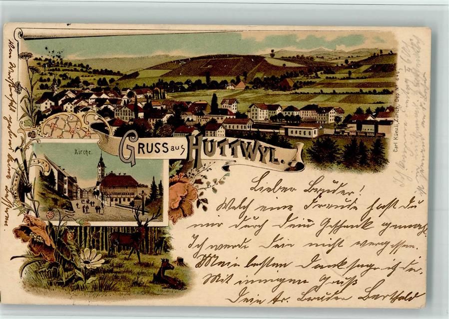 Huttwil, Bahnhof Eisenbahn Lithographie
