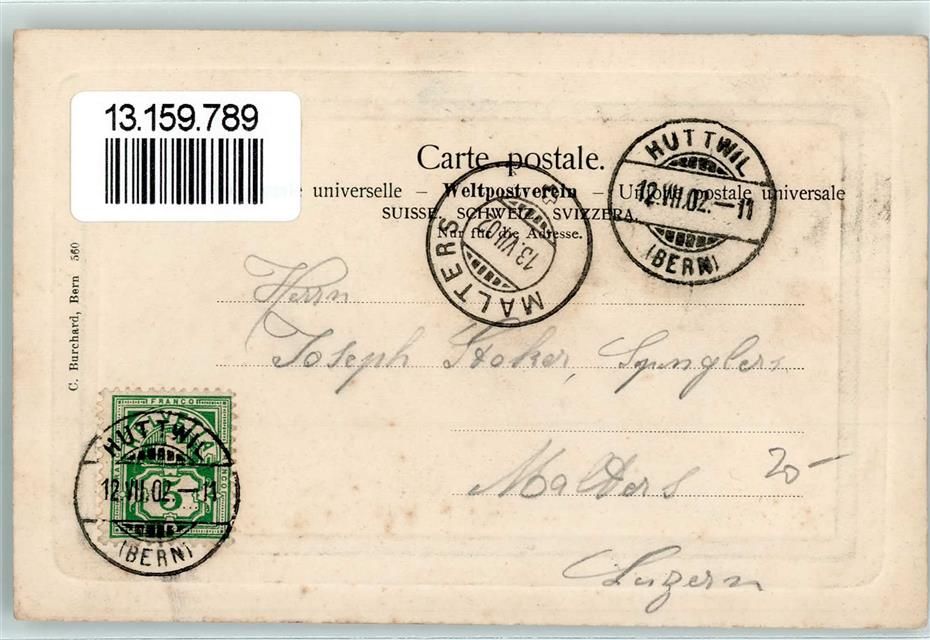 4950 Huttwil 1902 Prägedruck Passepartout AK