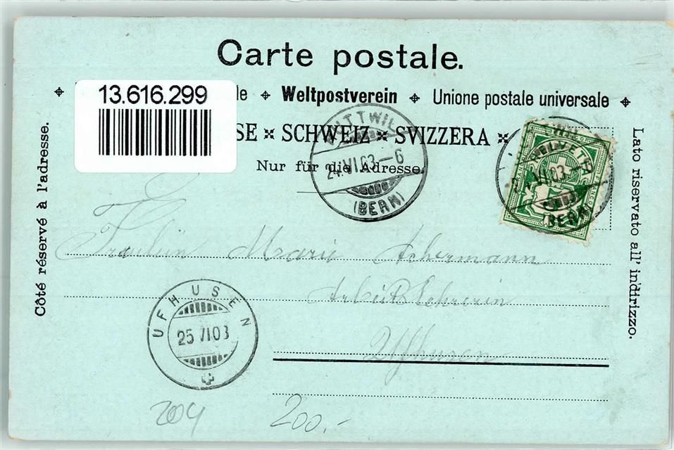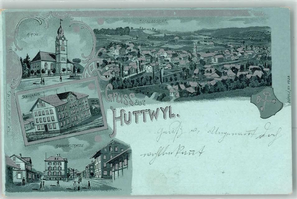 4950 Huttwil 1903 Lithographie Kirche Schulhaus Bahnhofstrasse