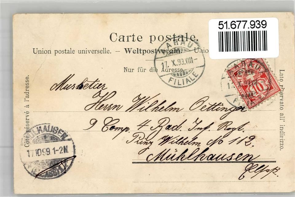 5000 Aarau 1899 Lithographie Kettenbrücke Marktbrunnen Schloss