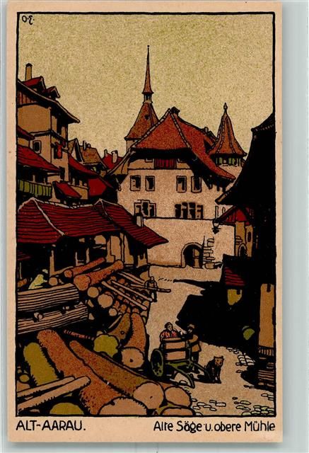 5000 Aarau Künstlersteindruck Alte Säge und obere Mühle sign