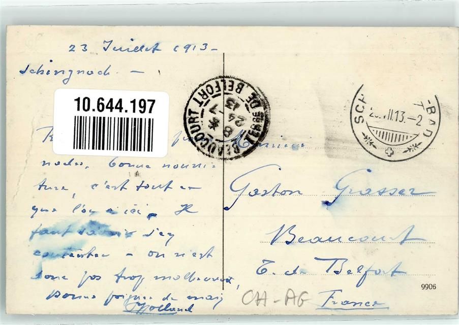 5116 Schinznach Bad 1913 Gebrauchsspuren