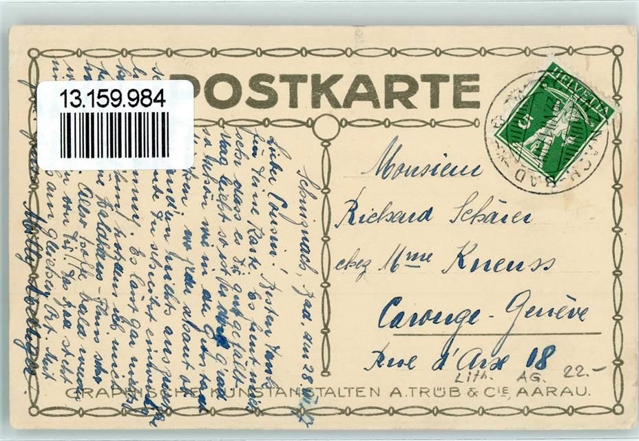 5116 Schinznach Bad 1917 Gebrauchsspuren Lithographie Künstlerkarte AK