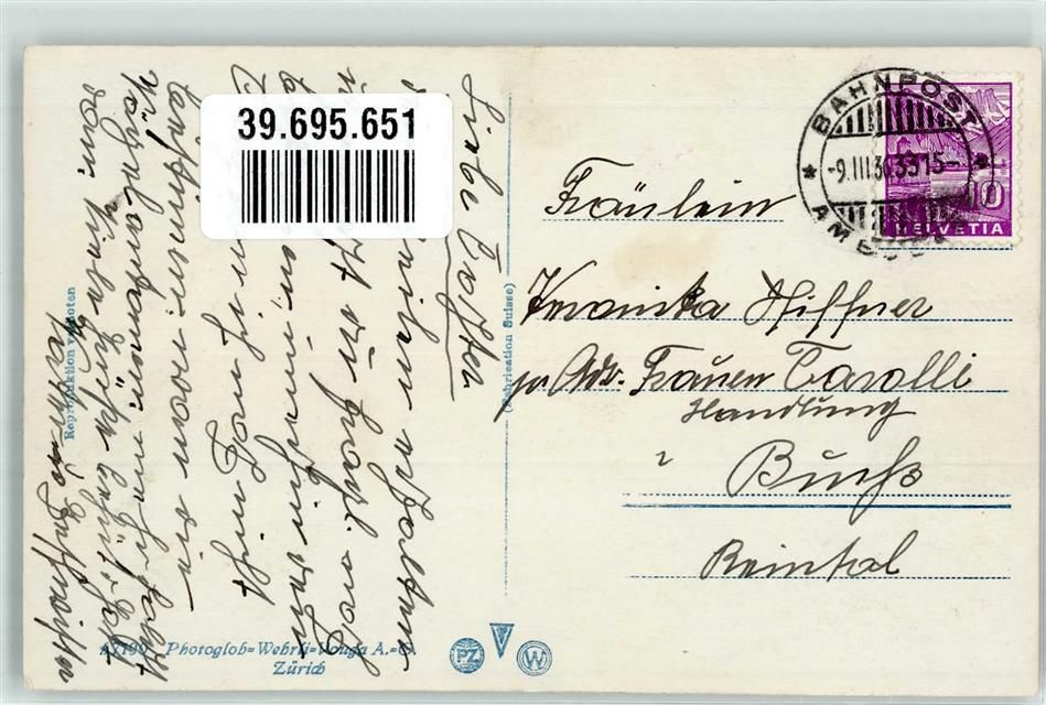 5300 Turgi Gebrauchsspuren Bahnpost Zug 3315