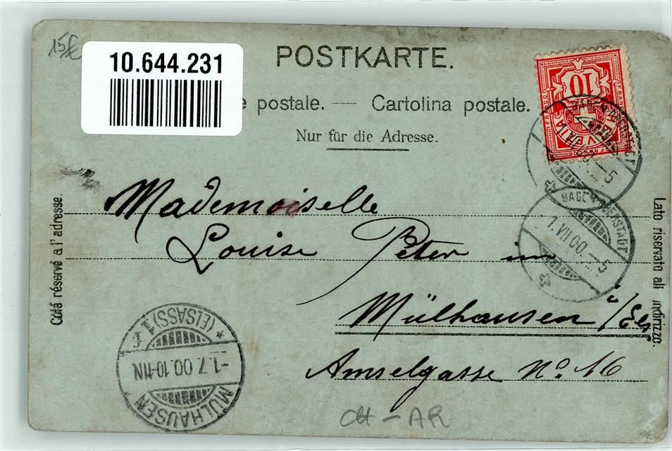 5400 Baden 1900 Gebrauchsspuren Humorkarte Mondschein