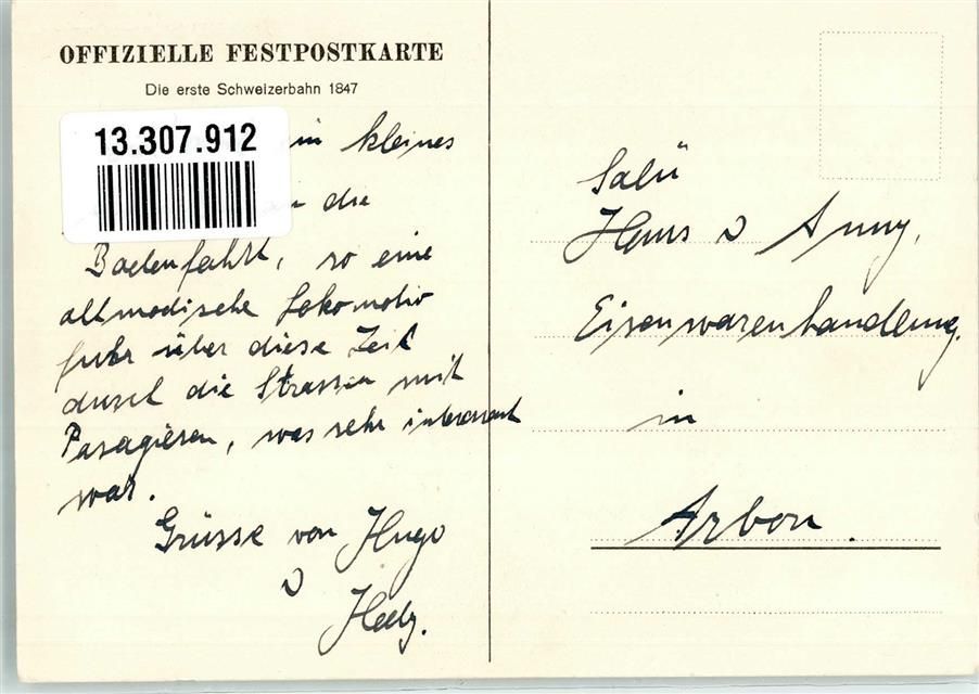 Baden, Die erste Schweizerbahn 1847 Festkarte