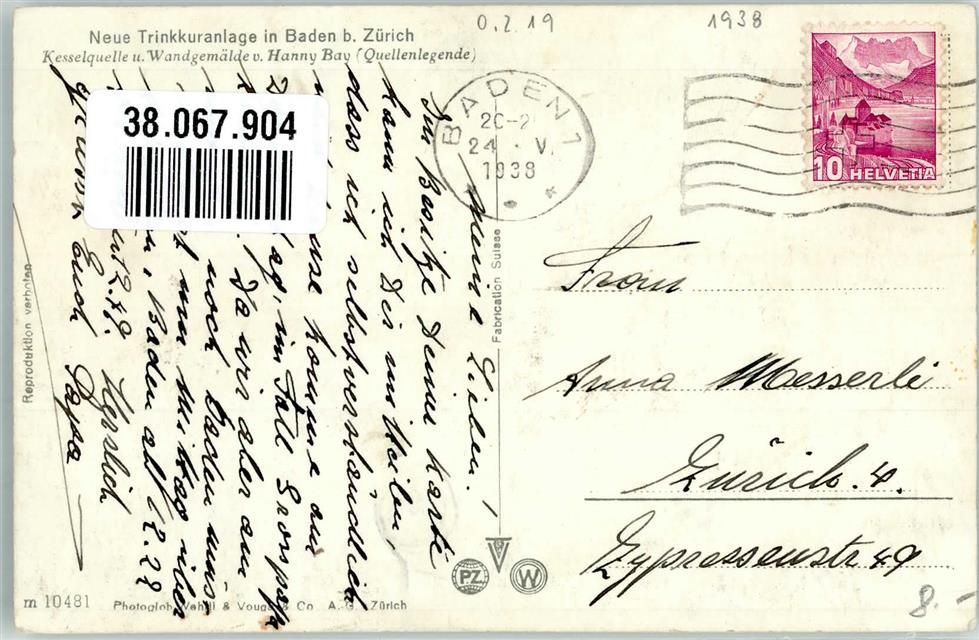 5400 Baden 1938 Foto AK Kesselquelle Wandgemälde Bay, Hanny Trinkkuranlage