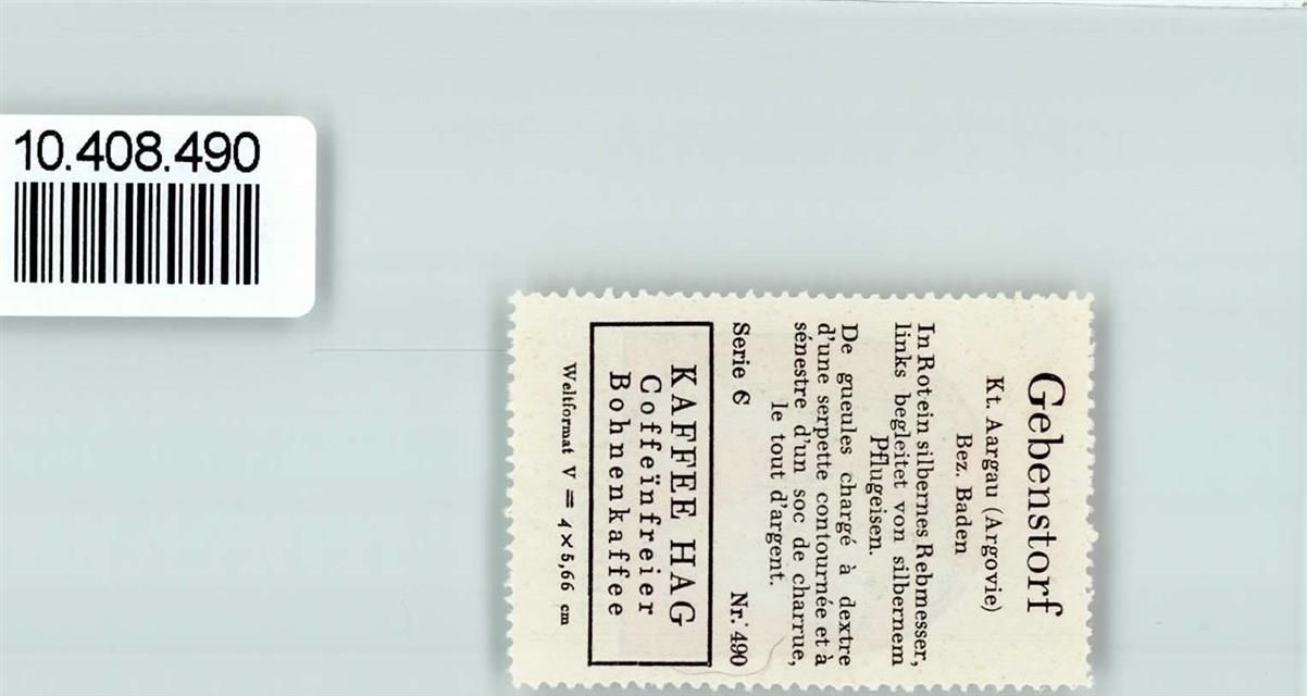 Gebenstorf, Vignette Wappen Kaffee Hag ca 1920-1940 Rebmesser Pflugeisen