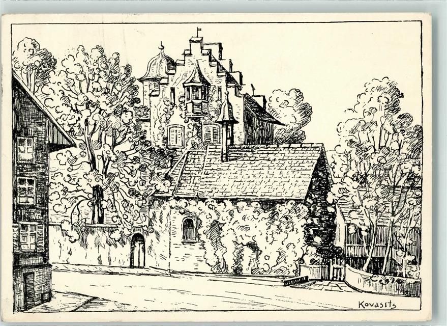 5454 Bellikon 1939 Künstlerkarte Schloss Bellikon Zeichnung sign. Kovasits Feldpost Territorial Mitr.Kp.