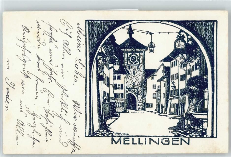 5507 Mellingen - Zeichnung, Ortspartie