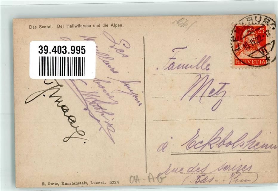 Lenzburg, Hallwilersee Ort lt. Stempel