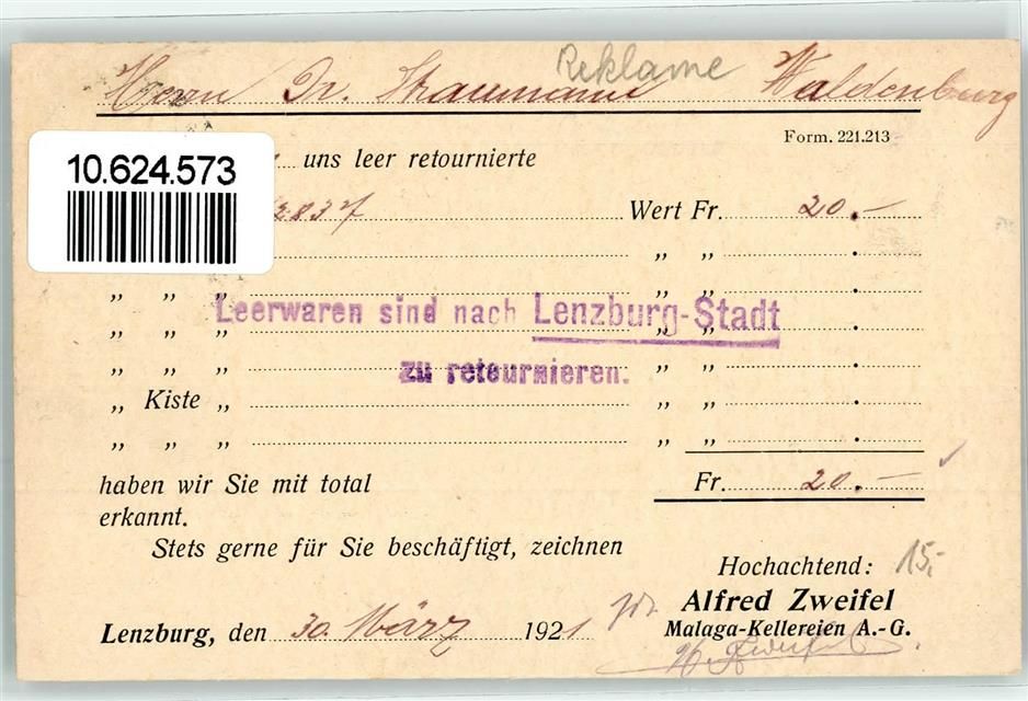 5600 Lenzburg KEINE AK Alfred Zweifel Malaga Kellereien Werbung