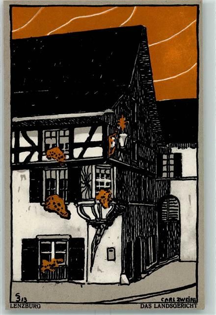5600 Lenzburg Künstlerkarte Landsgericht sig Carl Zweifel Serie 1