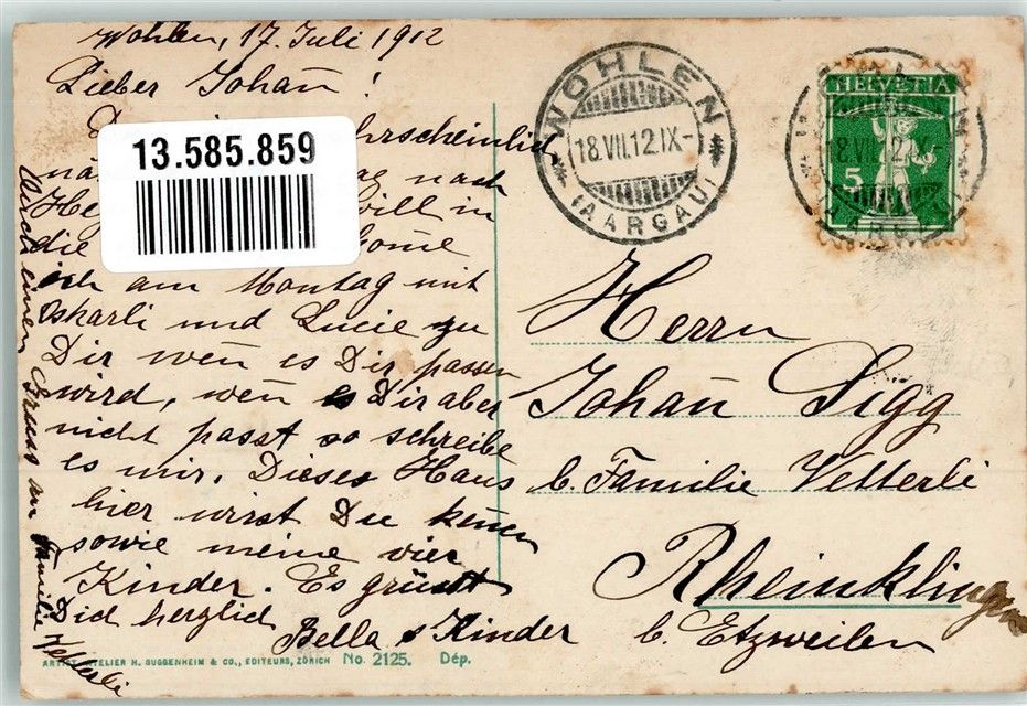 5610 Wohlen AG 1912 Foto AK Niederwiler- Straße