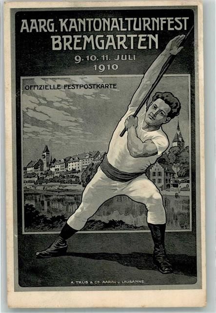 5620 Bremgarten AG 1910 Künstlerkarte Aarg. Kantonalturnfest 9.10.11.Juli 1910