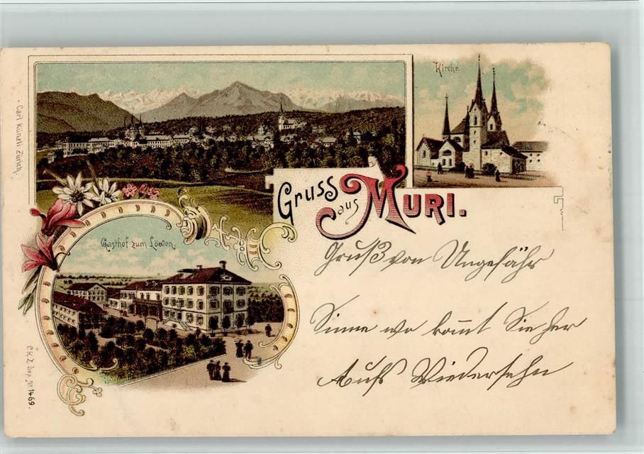 5630 Muri AG 1898 BOAKC Gasthaus Löwen Lithographie