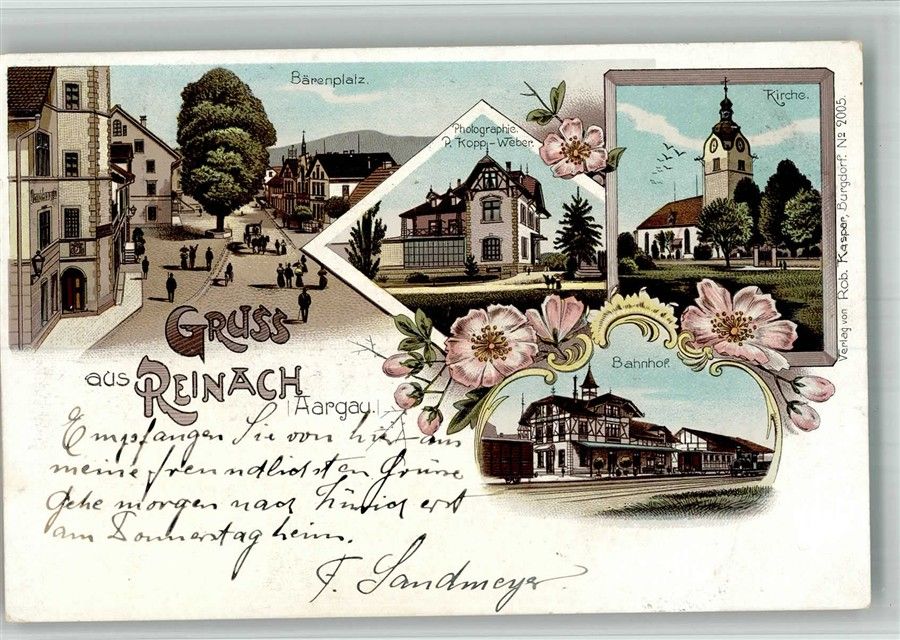 5734 Reinach AG 1902 BOAKC Bahnhof Kirche Bärenplatz Lithographie