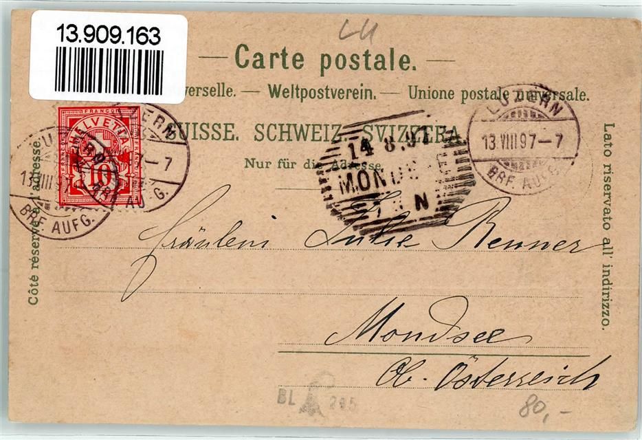 6000 Luzern Lucerne 1897 Lithographie Löwen Denkmal Edelweiss