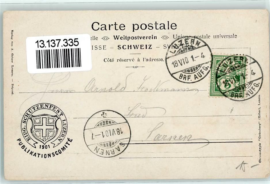 Luzern, Eidgen. Schützenfest Grosse Festhalle sign Künstlerkarte
