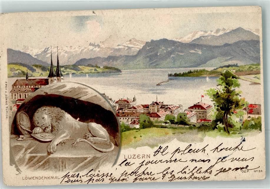6000 Luzern Lucerne 1905 Lithographie Löwendenkmal